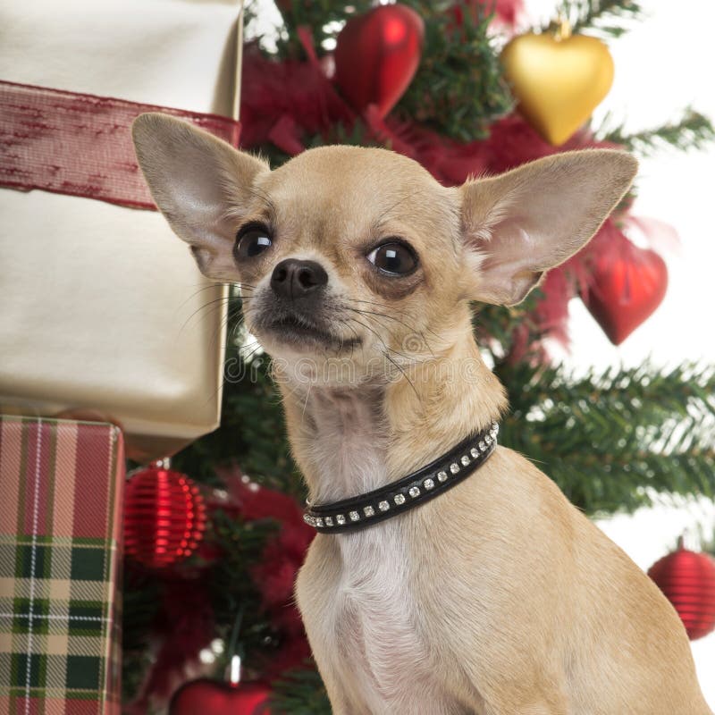 Chihuahua Dog With Christmas Decoration Stock Image Image Of Santa Baubles 120103907